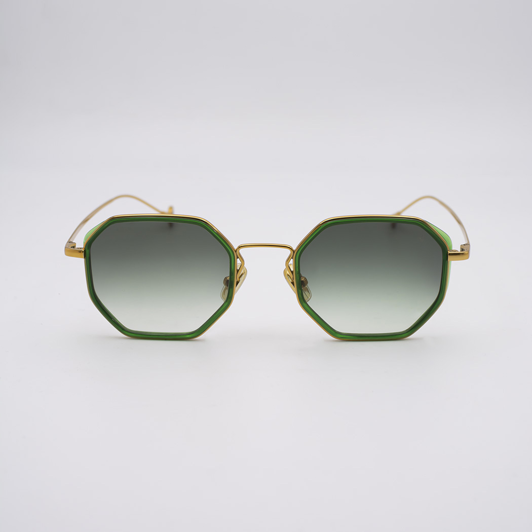 Tommaso di Eyepetizer è una montatura da sole unisex dalla forma ottagonale contemporanea, realizzata in acciaio ultraleggero con frontale in acetato colorato. Il design minimale e contemporaneo presenta una struttura in metallo argentato con frontale e lenti sfumate blu che creano un contrasto elegante e sofisticato.